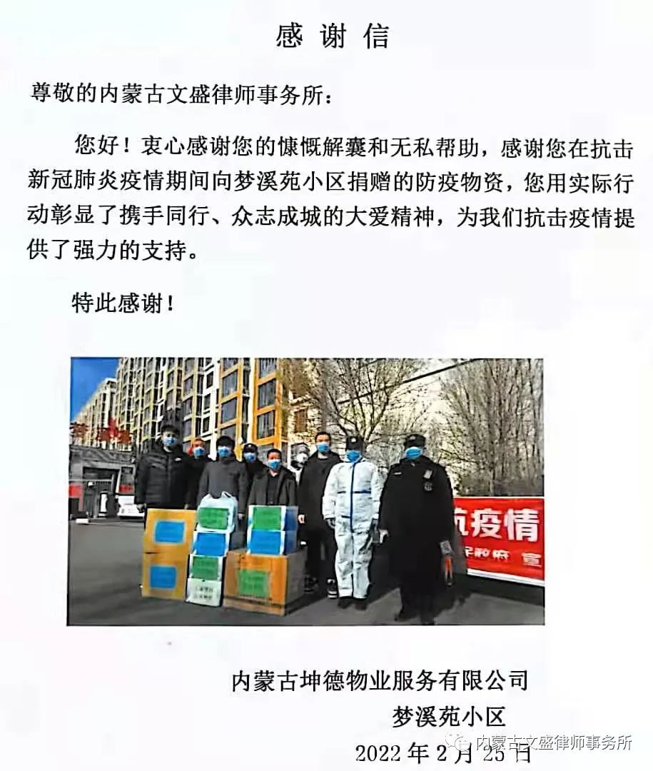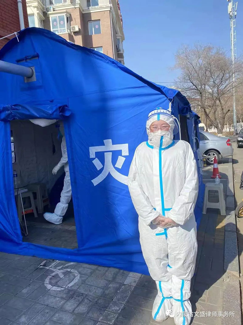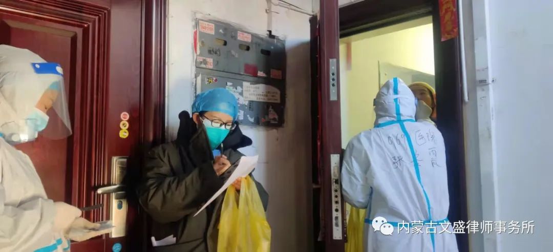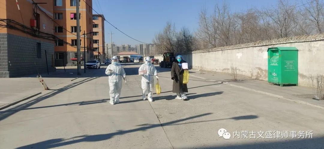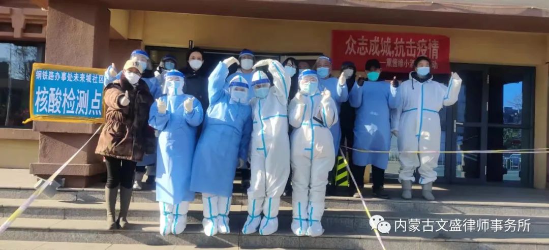 疫情就是命令,防控就是责任。在疫情面前,没有旁观者,更没有局外人。自呼和浩特市疫情爆发以来,我所吴玉荣、田振业等党员律师积极投身于这场没有硝烟的战争中,不畏严寒、不惧病毒、克服困难勇于担当志愿者,协助社区开展疫情防控的各项工作,冲在第一线。作为党员律师希望在这个特殊时期,在党和人民需要的紧急关头,承担起律师的社会责任,保护人民群众的人身安全,保护我们共同的美丽青城。